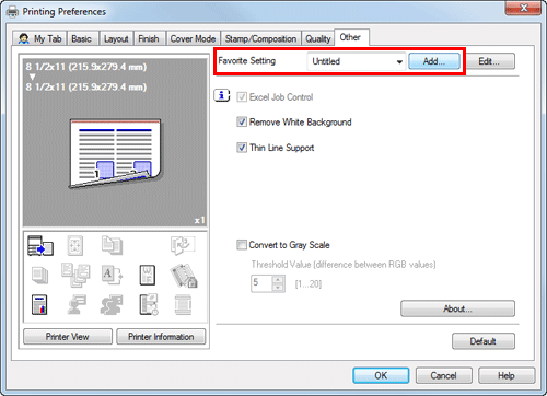 A15. Yes. You can easily customize the window from the properties window of the printer driver by registering frequently used functions en masse on My Tab or registering settings for respective tabs as your favorite for quick activation.
