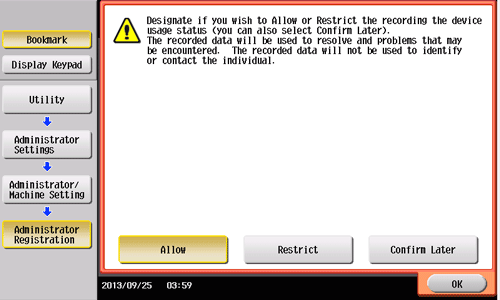Seleccione si desea permitirnos adquirir datos de registro relativos al uso de la máquina.