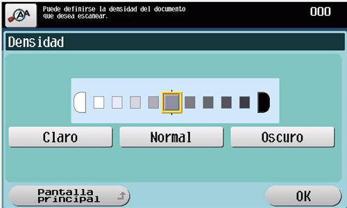Toque [Config. escaneado] - [Densidad] para ajustar la densidad para escanear el original.