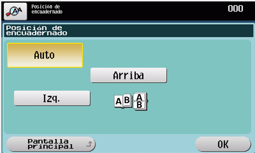 [Automática] | Establece automáticamente la posición de encuadernación del original.