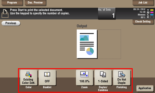Es posible modificar los ajustes para [Color], [Zoom], [Dúplex/Combinar] y [Acabado].