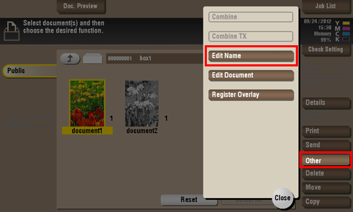 Seleccione el archivo que se va a renombrar, toque [Otros] y, a continuación, [Editar nombre].