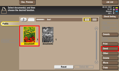 Para enviar un archivo, seleccione el archivo que se va a enviar y, a continuación, toque [Enviar].