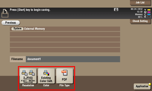 Es posible modificar los ajustes [Resolución], [Color], [Tipo archivo] y [No. archivo/Asun./Otr.].