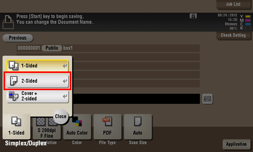 Toque [Normal/Dúplex] y, a continuación, toque [2 caras].