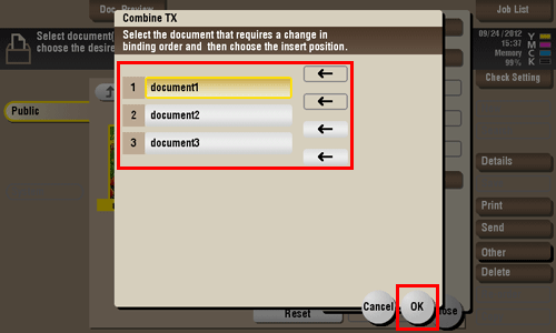 Cambie el orden de los archivos para imprimir o enviar según sea necesario y, a continuación, toque [Aceptar].