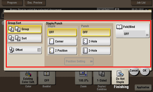 [Grapar/Perforar] | [Grapar] | Especifique el modo de grapado. |