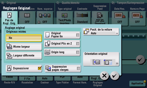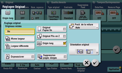 [OUI]/[OFF] | Sélectionnez [OUI] pour spécifier Original Livre. |