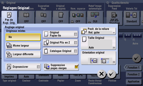 [Direction Original] | Spécifiez l'orientation de l'original chargé. | |