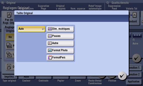 Si le format de l'original n'est pas détecté correctement, sélectionnez une touche qui correspond au format de l'original à numériser. Si la machine ne peut pas détecter le format de certains originaux ou photos dont le format est irrégulier, spécifiez manuellement le format.