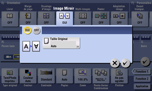 [OUI]/[OFF] | Sélectionnez [OUI] pour spécifier Image Miroir. |