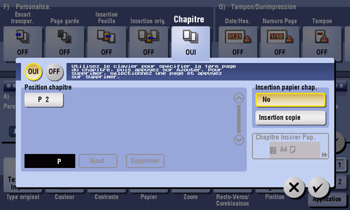 [OUI]/[OFF] | Tapez sur [OUI] pour activer l'option Chapitre. |