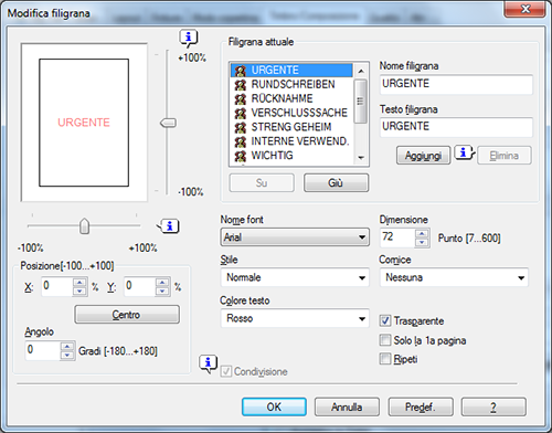 [Posizione] | Specificare la posizione di stampa della filigrana.