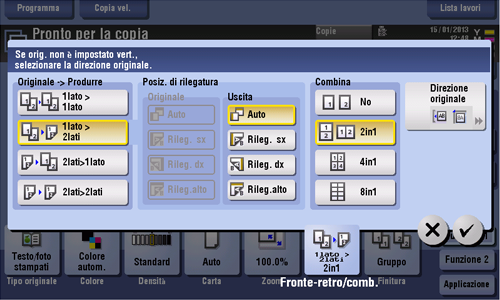 In [Originale > Produrre], fare clic su [1lato>2lati].