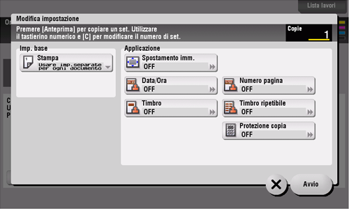 Configurare le impostazioni di copia e premere Avvio.