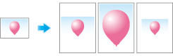 L'immagine originale è ingrandita, divisa e stampata su diversi fogli. Quando si uniscono i fogli stampati, si creerà un poster grande.