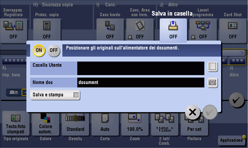 Se è impostato [Salva e stampa], è possibile stampare l'originale e salvarlo contemporaneamente nella casella utente.