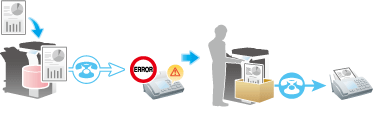 La trasmissione fax viene tentata per il numero di volte specificato dalla funzione ricomposizione automatica. Se tali tentativi non vanno a buon fine, il documento fax è memorizzato nella casella utente ritrasmissione fax.