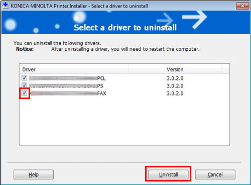 ] nella finestra Start, selezionare [Pannello di controllo] - [Programmi], quindi fare clic su [Disinstalla un programma]. Nell'elenco, fare doppio clic su [KONICA MINOLTA C754Series(PS_PCL_FAX)].