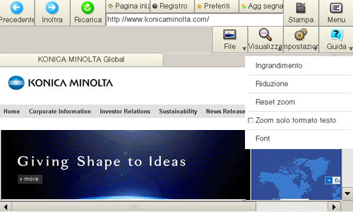 Selezionare [Menu] - [Visualizza] sulla barra degli strumenti per ingrandire oppure ridurre il formato di una pagina e modificare i codici carattere.