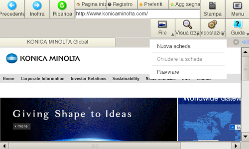 Per utilizzare le schede selezionare [Menu] - [File] sulla barra degli strumenti.