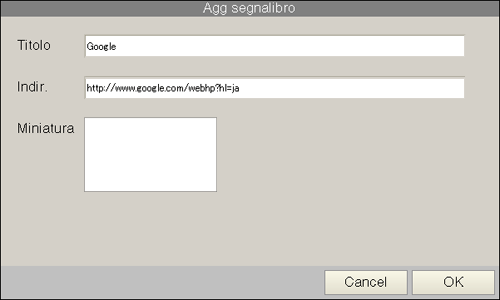 Visualizzare la pagina da aggiungere come preferita, quindi premere [Agg segnalibro].