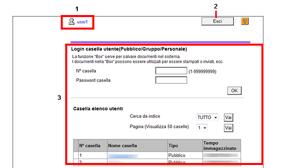 2 | [Esci] | Premere questo pulsante per uscire da Web Connection. |