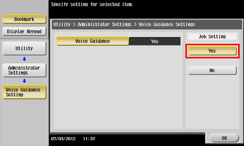 Fare clic su [Utilità] - [Impostazioni Amministratore] - [Voice Guidance Settings].
