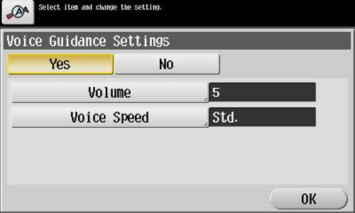 [Sì]/[No] | Selezionare [Sì] per attivare le istruzioni vocali. [No] è specificato in modo predefinito. |