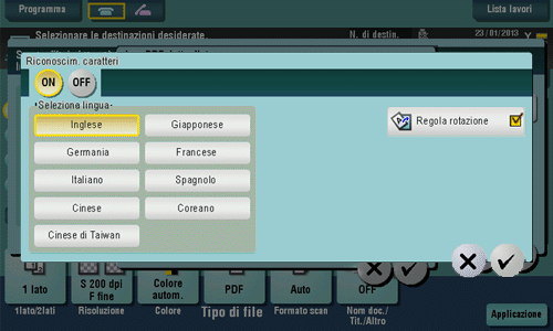 [Seleziona lingua] | Selezionare una lingua per l'elaborazione OCR. Selezionare una lingua utilizzata nell'originale per riconoscere correttamente i dati testo. | |