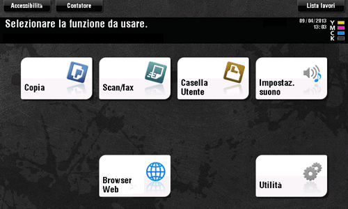 Per visualizzare il menu principale, selezionarlo come schermata iniziale, che sarà visualizzata dopo avere effettuato la procedura di accesso a questa macchina.