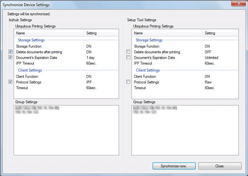 Selezionare il nome di un'MFP per cui occorre sincronizzare le impostazioni, quindi fare clic su [I valori di impostazione saranno sincronizzati].