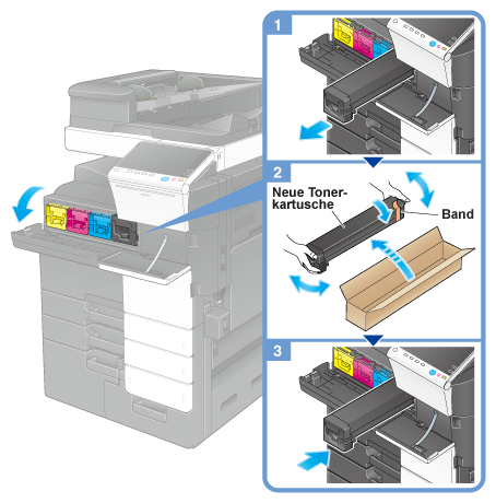 Im folgenden Beispiel wird der Austausch der schwarzen Tonerkartusche dargestellt.