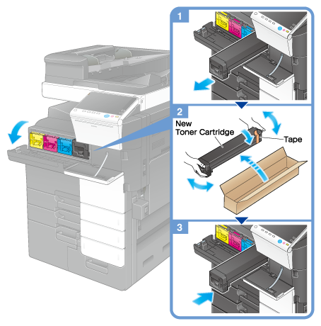 The following example shows how to replace a Black Toner Cartridge.