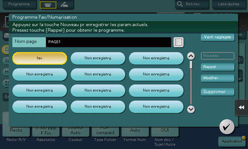 Il est possible d'enregistrer jusqu'à 400 programmes Fax/Numérisation.