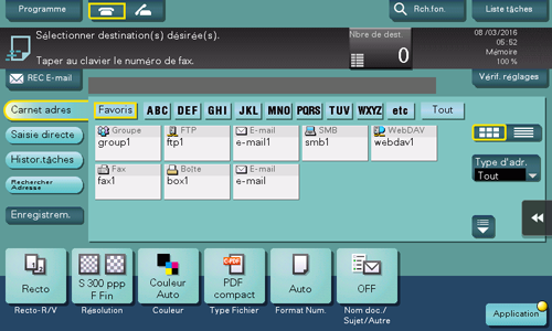 Vous pouvez vérifier, modifier ou supprimer les réglages pour une destination enregistrée depuis Utilitaire. Pour des détails, voir Ici.