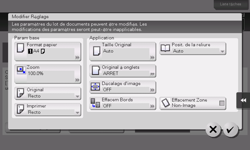 Si vous le souhaitez, tapez sur [Modifier Réglage] pour changer les réglages de copie en fonction du nouvel original.