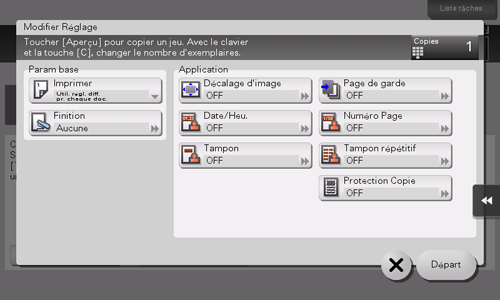 Configurez les réglages copie et appuyez sur la touche Départ.