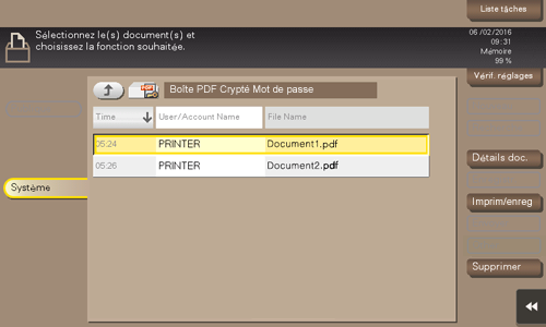 Tapez sur [Système] - [PDF Cryptés MdPass].