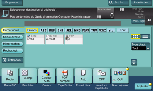 Nom machine | Nom de la machine enregistré dans [Utilitaires] - [Réglages Administrateur] - [Réglages Administrateur/Machine] - [Entrer Adresse Machine] - [Nom machine]. |