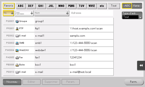• Vous pouvez aussi enregistrer des groupes en utilisant Web Connection. Pour des détails, voir Ici.