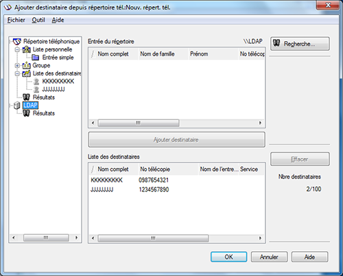 Si vous utilisez le serveur LDAP ou Active Directory de Windows Server, vous pouvez rechercher un destinataire sur le serveur.