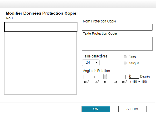 Enregistrez ou modifiez les données de protection copie et cliquez sur [OK].