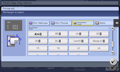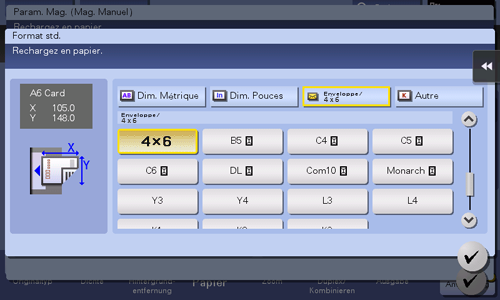 Tapez sur [Enveloppe/4 6] ([Enveloppe/Cart.A6]) dans [Format papier].