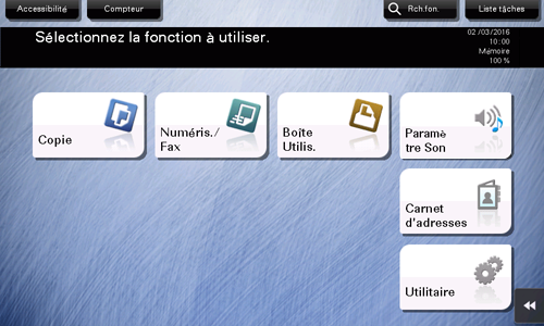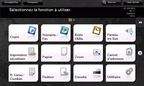 Le placement de touches de raccourci de fonctions souvent utilisées sur l'écran principal vous permet d'accéder rapidement à la fonction voulue.