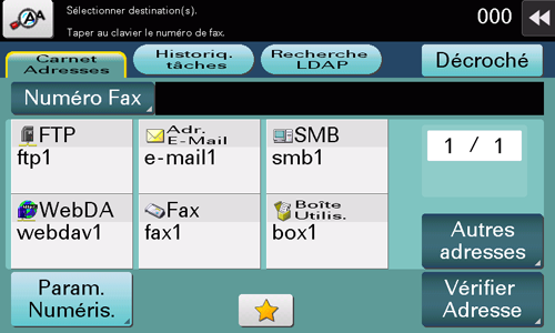 • Effleurer [Autres adresses] filtre les destinations basées sur le type de destinations enregistrées.