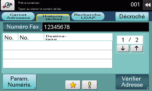 Dans [Historiq. tâches], sélectionnez une destination à partir du journal des destination de transmission ou des destinations enregistrées.