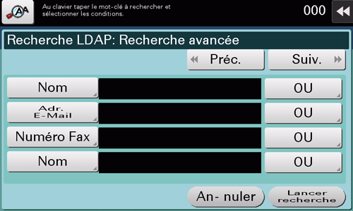 1. Tapez sur [Recherche LDAP] - [Recherche] ou [Recherche avancée].