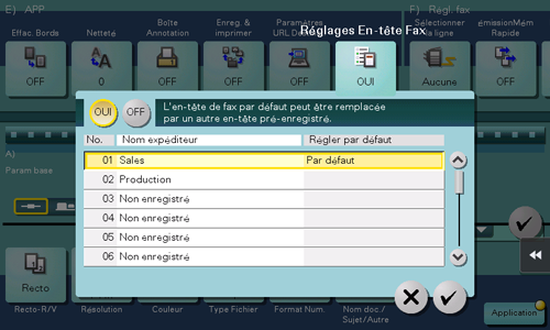 Si vous voulez utiliser un nom d'expéditeur différent du nom par défaut, sélectionnez un nouveau nom d'expéditeur de remplacement, puis tapez [OK].
