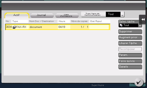 Sélectionnez une tâche reçue à l'aide de Réception Mémoire Proxy, puis tapez sur [Faire suivre].